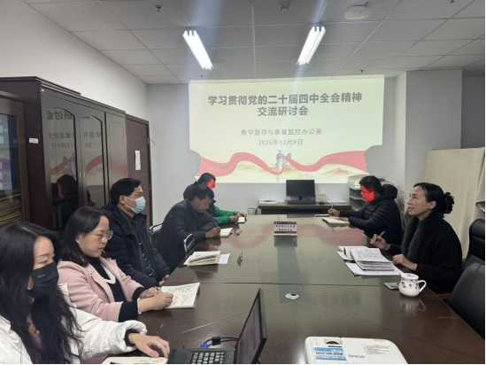 为深入学习贯彻党的二十届四中全会精神,全面落实立德树人根本任务,切实以高质量党建引领高质量发展,2025年12月9日,教学督导与质量监控办公室召开 “学习贯彻党的二十届四中全会精神交流研讨会”,推动全会精神在教学督导与质量监控工作中走深走实、落地见效。